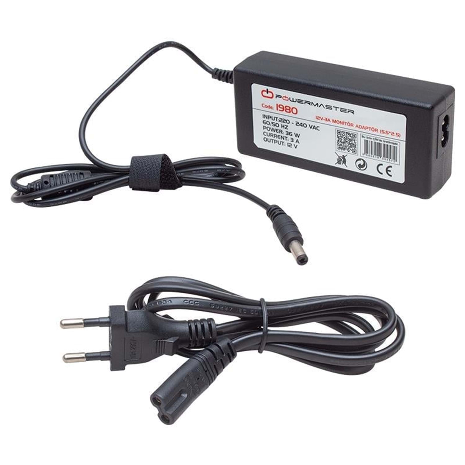 Powermaster PM-1980 12 Volt - 3 Amper - 36 Watt 5.5*2.5 Mm Uçlu Plastik Kasa Masaüstü Adaptör