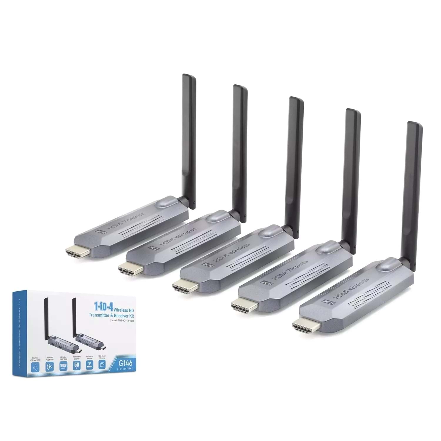 Hadron Hdx1418 Hdmi Kablosuz Transmitter + Receiver Kit HD 1TX To 4RX 50M Gri