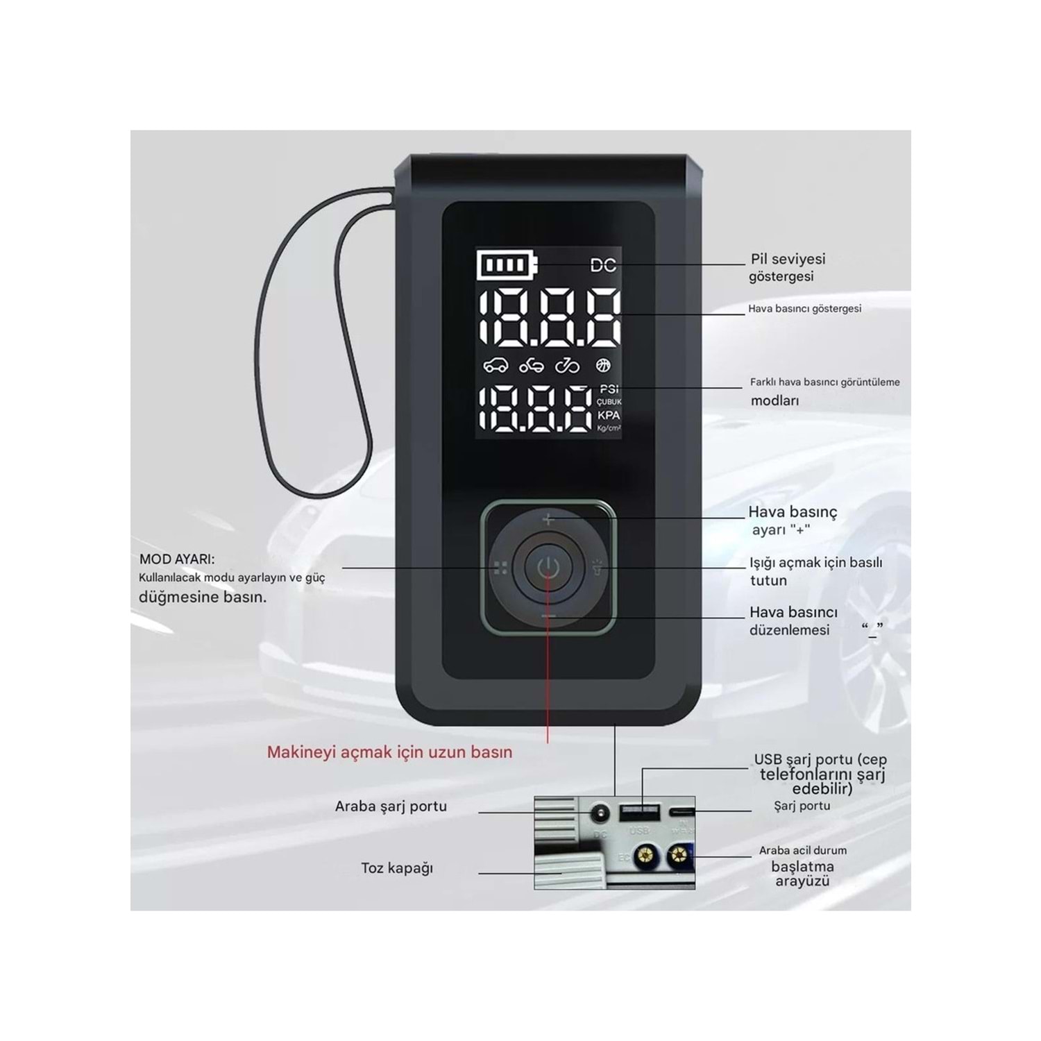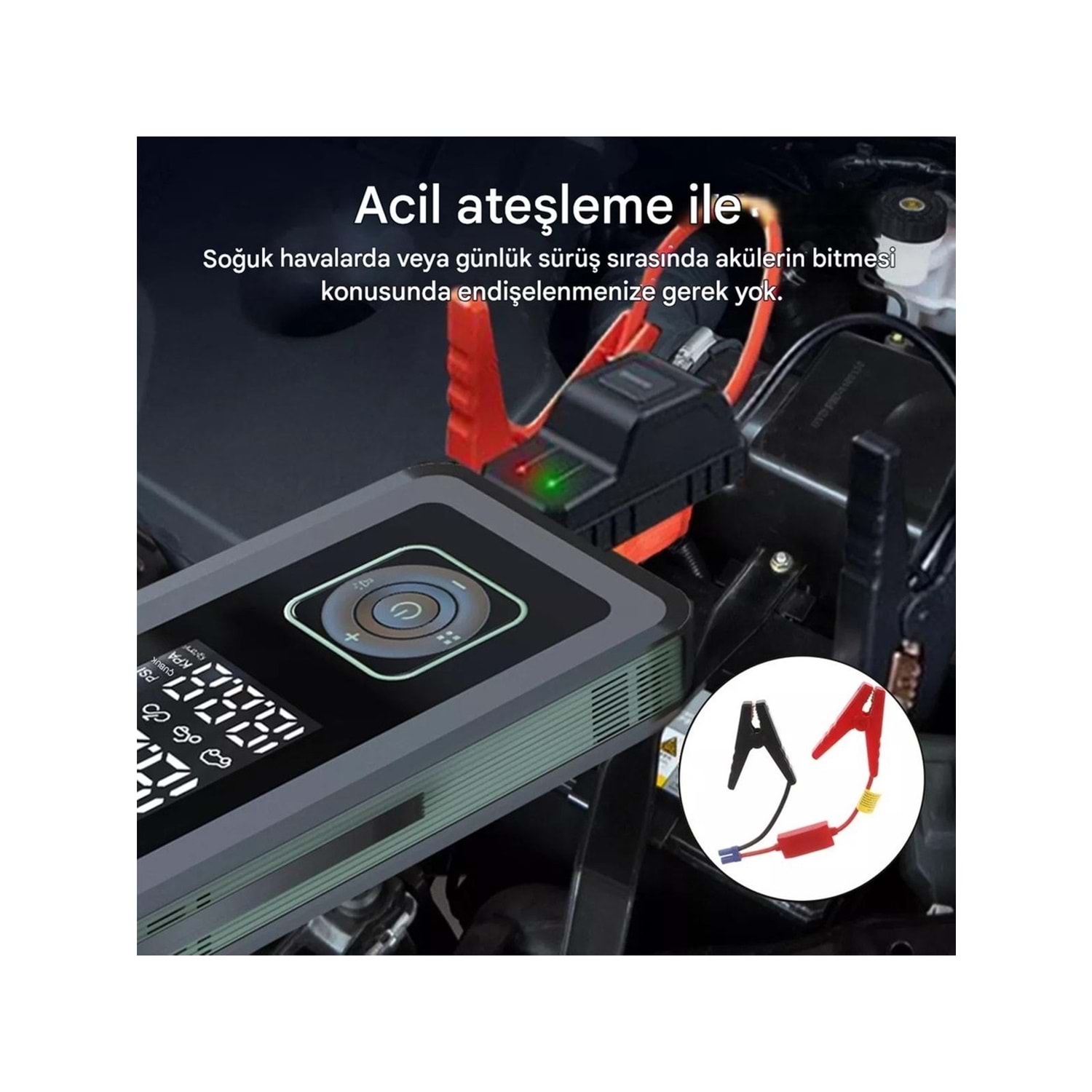 - Acil durum marş motorları, araçlarını çalıştırırken ekstra koruma sağlaması gerekenler Çok fonksiyonlu araç şişirme pompamızı satın alın ve seyahatlerinize güvenlik ve rahatlık katın!