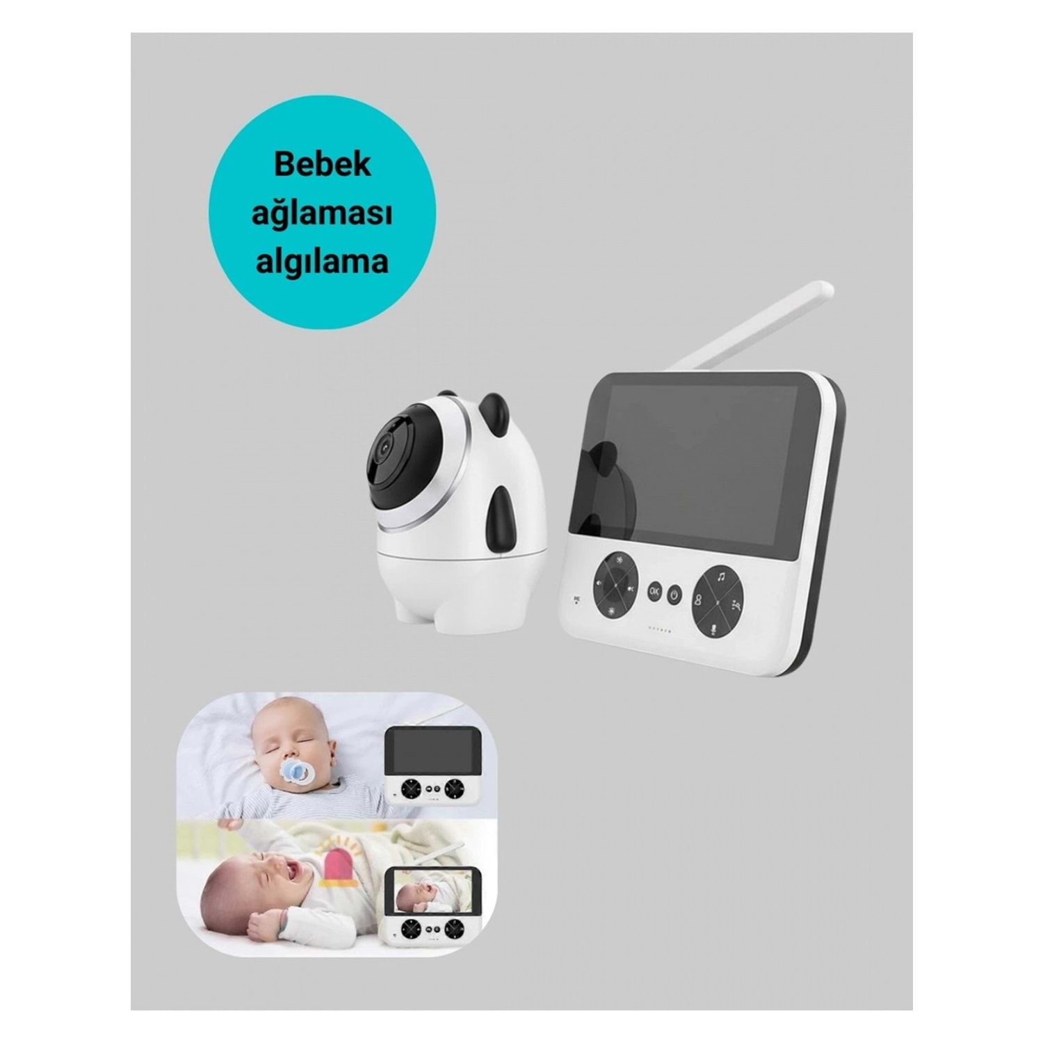 720P çözünürlüklü bebek kamerası, ebeveynlerin bebeklerini günün her anında güvenle izleyebilmesi için tasarlanmış gelişmiş bir izleme sistemidir. Net ve akıcı görüntü sunan HD kamera, bebeğinizin hareketlerini detaylı şekilde takip etmenize olanak tanır. 4.3 inç ve 5.0 inç ekran seçenekleri sayesinde geniş görüntü alanı sunarak kullanım konforunu artırır.HD gece görüş özelliği, ışık tamamen kapalıyken bile net görüntü sağlar. Kızılötesi teknoloji sayesinde bebeğiniz uyurken odasına girmeden kontrol edebilirsiniz. Ağlama algılama fonksiyonu, bebeğiniz ağladığında otomatik uyarı vererek hızlı müdahale imkânı sunar. Bu özellik özellikle gece saatlerinde ebeveynler için büyük bir rahatlık sağlar.Uzaktan kamera kontrolü sayesinde yukarı, aşağı ve çevresel hareketlerle odanın tamamını görüntüleyebilirsiniz. 4x dijital zoom özelliği ile bebeğinizin hareketlerini daha yakından izleyebilirsiniz. İki yönlü sesli iletişim özelliği, bebeğinizle uzaktan konuşmanıza ve onu sakinleştirmenize yardımcı olur.Dahili ninni fonksiyonu, bebeğin uykuya geçişini destekler. Sıcaklık ölçüm özelliği sayesinde bebeğinizin bulunduğu ortamın ideal koşullarda olup olmadığını takip edebilirsiniz. Alarm ve saat fonksiyonları ebeveynlerin günlük düzenini kolaylaştırır.Kablosuz yapısı ve pratik kurulumu sayesinde ev içinde rahatlıkla kullanılabilir. Bebek güvenliği, ebeveyn huzuru ve kullanım kolaylığını bir arada sunan ideal bir izleme çözümüdür.