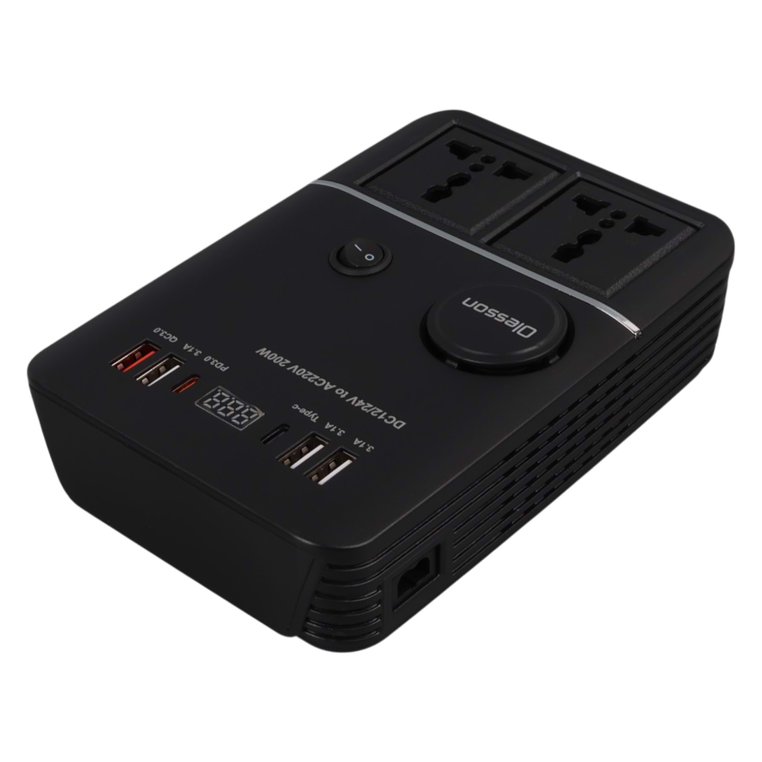 Olesson 1661 DC 12-24V 200W Oto Araç Power İnverter 2x Çakmak Girişi - 2x TYPE-C - 4x USB