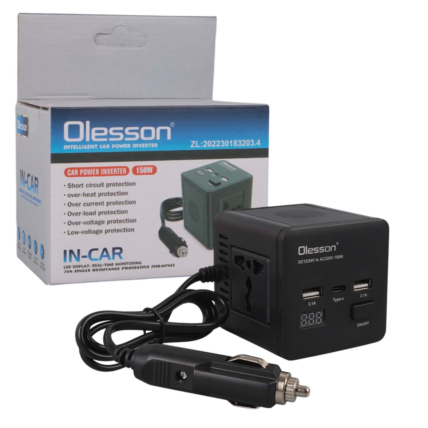 Olesson 1663 DC 12-24V 150W Oto Araç Power İnverter TYPE-C - Çift USB