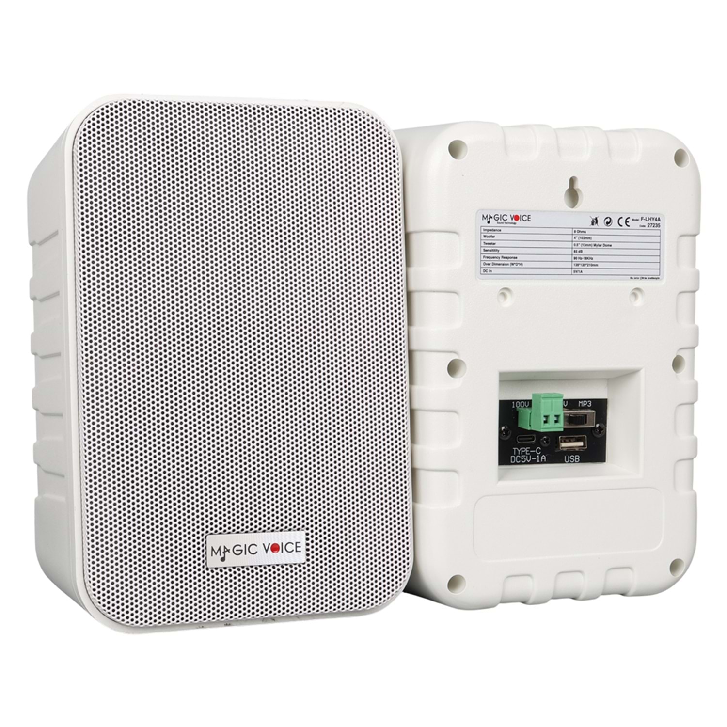 MAGICVOICE F-LHY4A 10 CM 4'' 10 W (MAX:150W) BEYAZ ÇİFTLİ USB'Lİ TRAFOLU SÜTUN HOPARLÖR (2'Lİ TAKIM)