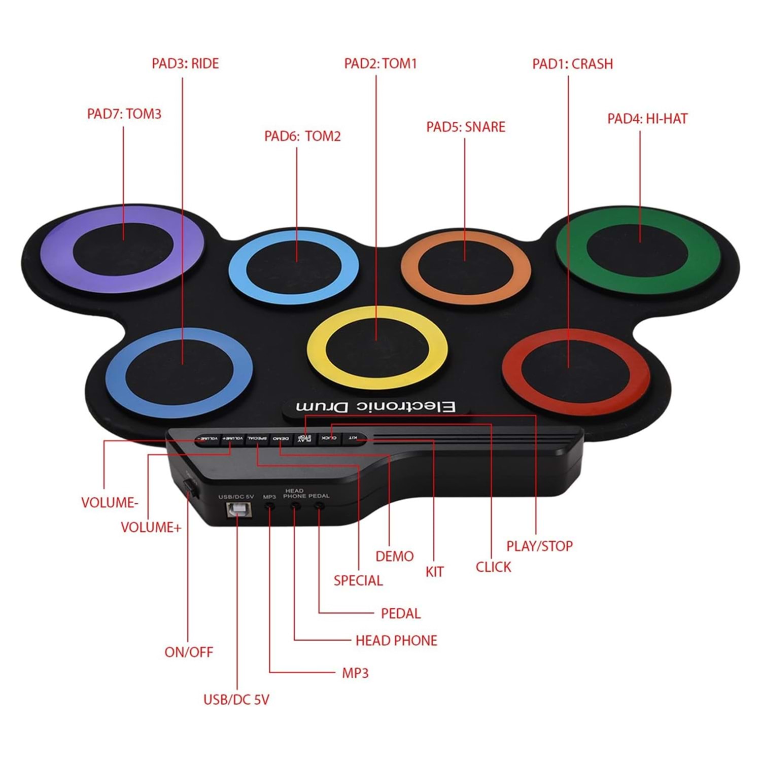 MAGICVOICE G3002R 7 PED GÖKKUŞAĞI RENKLİ ELEKTRONİK ROLL UP DAVUL KİTİ