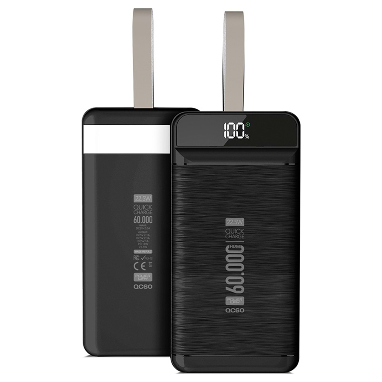 : QC60 22.5W KABLOLU 3.0 60000 MAH SİYAH-BEYAZ POWER